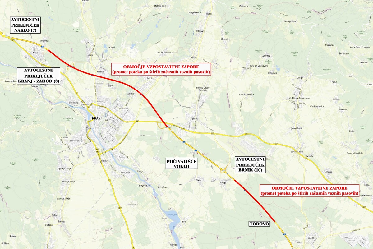 Obvoz bo urejen z začasno prometno signalizacijo po državni cesti preko avtocestnega priključka Naklo.
