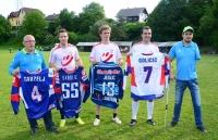 Zadnjo soboto v maju so se na igrišču Pod farovžem v Podbrezjah na tradicionalni (že četrti) nogometni tekmi pomerili ekipi FC Podbrezje in Hokejske reprezentance Slovenije. Velikemu številu gledalcev so se Žiga Jeglič, Boštjan Goličič, Robert Kristan, Rok Tičar, Robert Sabolič, Andrej Hebar, Anže Kuralt, Matic Podlipnik, Gregor Koblar in drugi hokejisti predstavili tudi kot odlični nogometaši, saj so že tretjič premagali domačine, tokrat kar s 3 : 0. Mnogi gledalci so prišli pozdravit tudi paraolimpijca in dvakratnega svetovnega prvaka Darka Đurića, za katerega so zbirali prostovoljne prispevke in sodelovali na dobrodelni dražbi dresov hokejske reprezentance, ki so mu jih podarili Žiga, Boštjan, Andrej in Robert. Paraolimpijec Darko, ki je zgled, vzor in navdih mnogim mladim, namreč zbira sredstva za nove proteze, za katere bo moral odšteti skoraj 80.000 evrov. Nekaj sredstev je bilo zbranih že to popoldne, še več pa je že bilo in še bo nakazil na za ta namen odprt račun (SI56 6000 0000 0389 138). Po zaključku tekme se je druženje z reprezentanti in Darkom Đurićem nadaljevalo pod šotoroma. Za dobro razpoloženje so poskrbeli imitator Sviks, DJ Balanca, Duo Veseljak, harmonikar Piči in Skupina Šilčki. J. J.