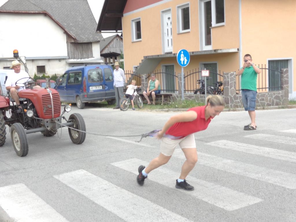 Konjeniško društvo Naklo, ki so ga več kot dobro desetletje nazaj ustanovili ljubitelji konj iz Naklega in okolice, je tudi na letošnjem občinskem prazniku organiziralo tekmovanje v vleki traktorja za najmočnejšega Naklanca oz. Naklanko. Traktor, ki se je do druge ure popoldne še prav spokojno nastavljal sončnim žarkom na bližnji zelenici pri parkirišču naklanske osnovne šole, so organizatorji nekaj minut pred pričetkom tekmovanja prestavili na glavno cesto, ki je za dobro uro in pol postala središče dogajanja.