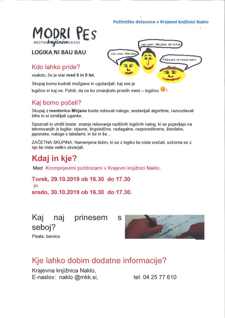 LOGIKA NI BAU BAU - Počitnike delavnice v Krajevni knjižnici Naklo za otroke, stare med 6 in 9 let