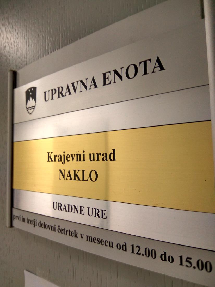 Upravna enota Kranj obvešča, da bo pisarna Krajevnega urada Naklo tudi v poletnem času od 1.7. do 31.8.2020 odprta vsak prvi in tretji delovni četrtek od 12.00 do 15.00 ure in sicer:
