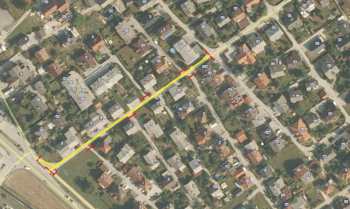obveščamo vas, da je predvidena popolna zapora ceste Ulica Toma Zupana od stavbe s hišno številko 1 do stavbe s hišno številko 12A (skladno s skico v prilogi). Navedena popolna zapora bo trajala od 28. 9. 2020 do 31. 10. 2020 zaradi popolne rekonstrukcije ceste. Dostop do objektov z osebnimi avtomobili za navedeni čas ne bo mogoč, izvajalec pa bo moral zagotoviti prevoznost do objektov za vozila nujne pomoči (gasilcem, medicinskemu osebju,…).