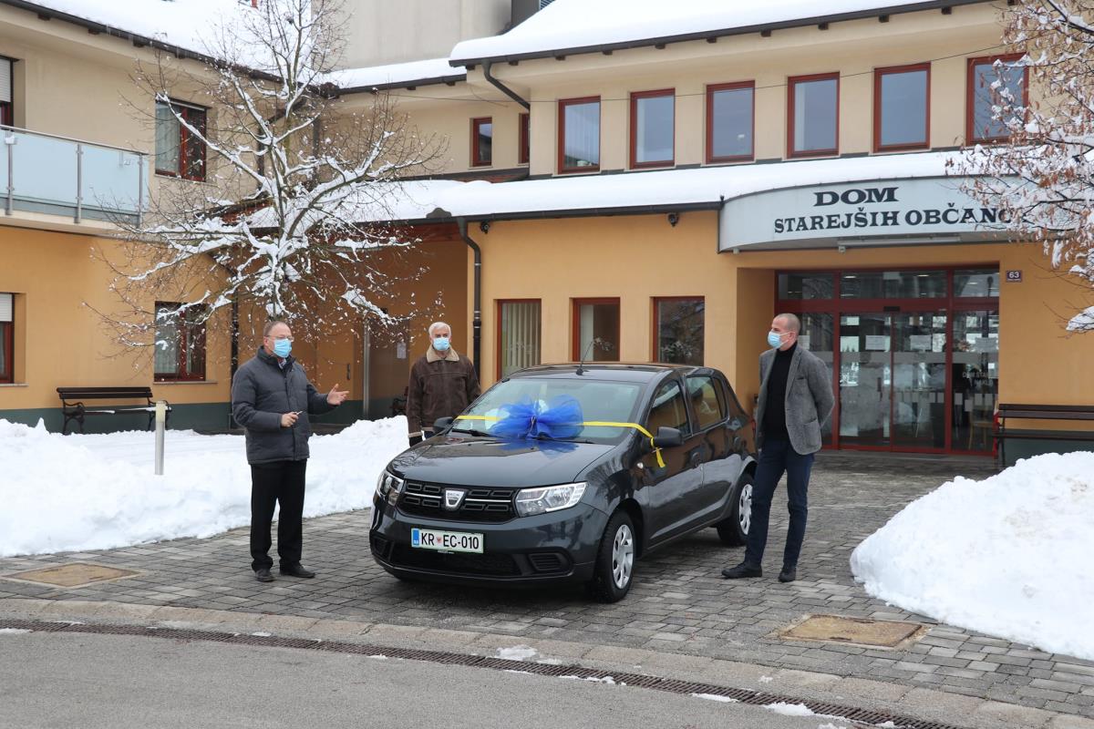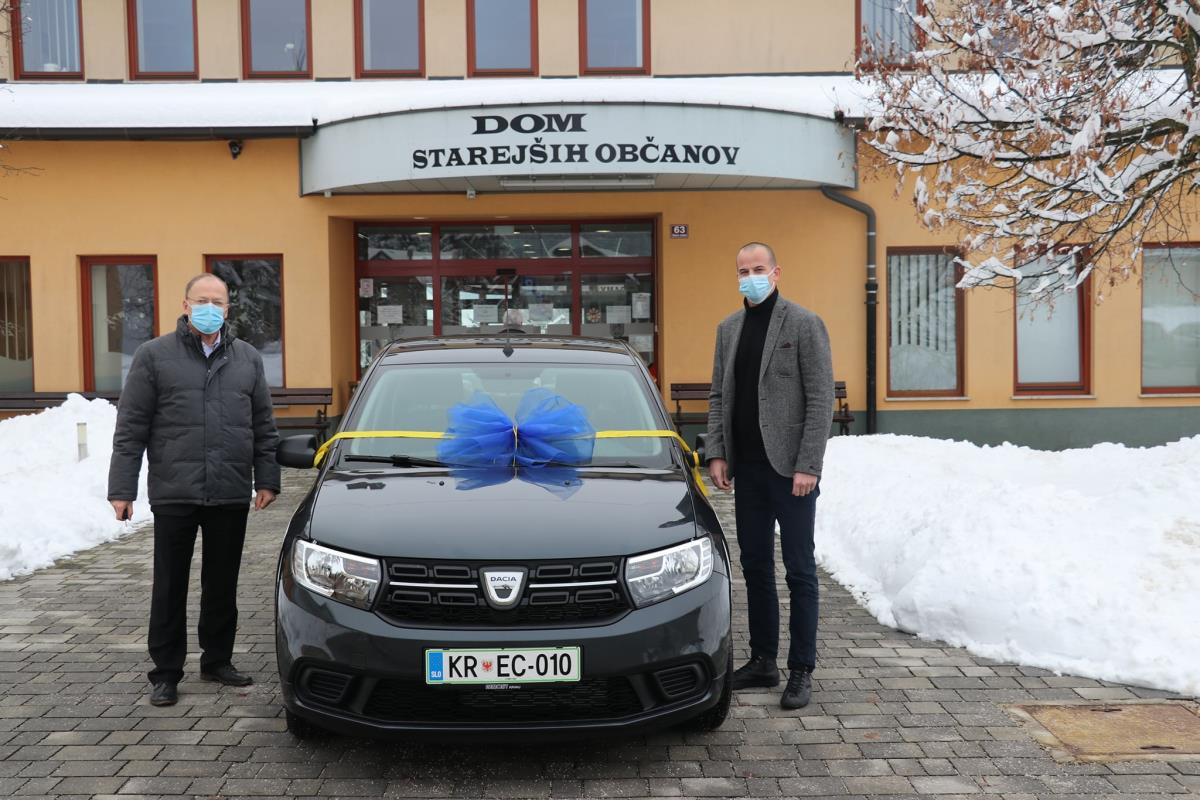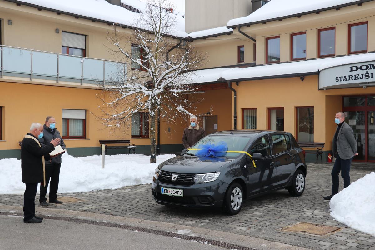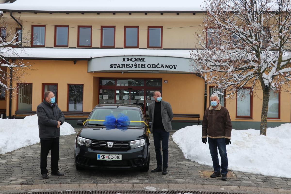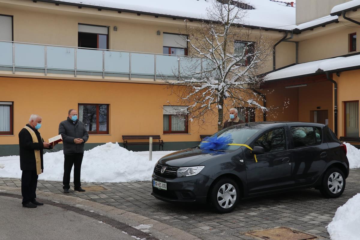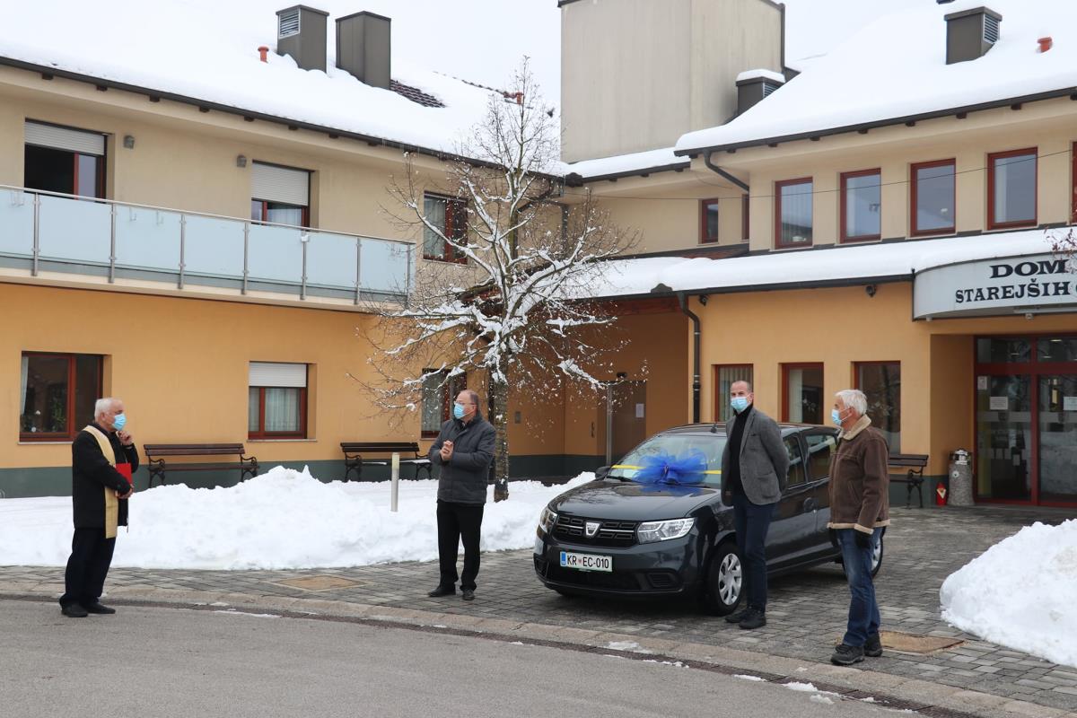 Danes smo pred Domom starejših občanov pripravili manjšo slovesnost v kateri smo g. Urbanu Boletu, direktorju DSO Petra Uzarja iz Tržiča, ki od septembra v Občini Naklo izvaja storitev pomoči na domu predali ključe novega avtomobila Dacia Sandero. Nabavna vrednost avtomobila znaša dobrih 9.100 eurov. Vozilo bodo uporabljale negovalke, ki bo obiskovale naše pomoči potrebne občanke in občane. Na slovesnosti se je pridružil tudi predsednik Društva upokojencev Naklo, g. Jože Kajin. Občini Naklo se je zahvalil za pozornost in pomoč, ki jo namenjamo skrbi za starejše. Da bi avto dobro in varno služil je v blagoslovu poudaril naklanski župnik g. Janez Zupanec, za kar se mu najlepše zahvaljujem. Po slovesnosti v domu sva z direktorjem g. Boletom v domu podpisala pogodbo o najemu in upravljanju DSO Naklo, ki se bo s strani tržičanov začelo 1. januarja naslednje leto. Po slovesnosti je sledil še prvi sestanek zaposlenih v domu z direktorjem g. Boletom. razgovoru sem se pridružil tudi sam.