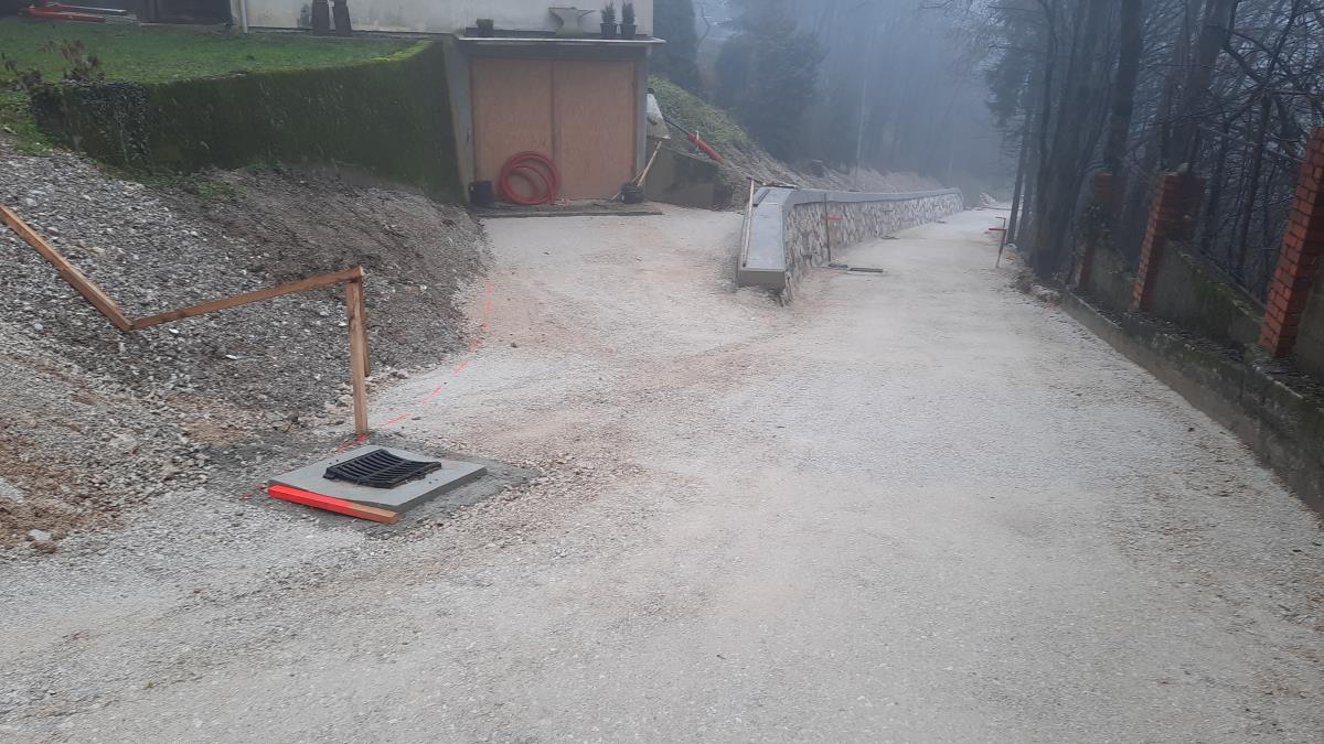 Tudi na Pokopališki poti smo bili v dilemi ali dela preko zime prekiniti ali nadaljevati. Glede na to, da so vsa dela pod vozišče že končana in, da je potrebno z granitnimi kockami pozidati sredinsko muldo za odvajanje meteorne vode, smo se odločili, da to delo izvedemo spomladi ob ugodnejših razmerah za nego betona. Poleg tega bi ob morebitnem sneženju snežni plugi že položene kocke močno poškodovali. Ko bo svoja dela zaključilo podjetje T-2 bo cesta splanirana in pogojno odprta za dostope do objektov. Prosimo za razumevanje!