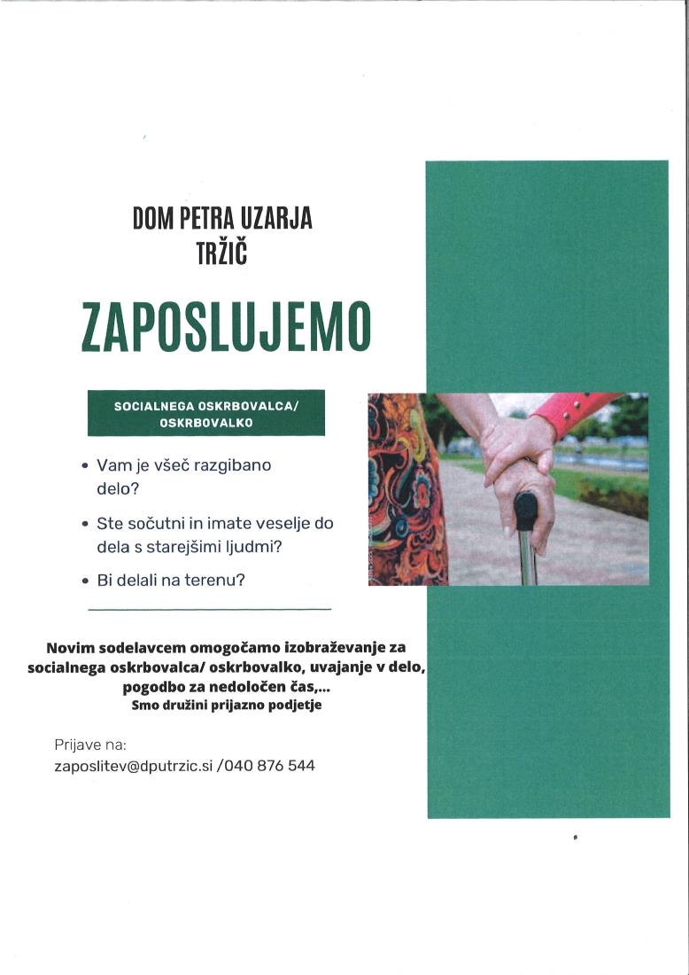 DOM PETRA UZARJA TRŽIČ - ZAPOSLITVENI OGLAS
